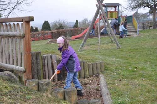 Am Spielplatz sorgten junge Eltern, besonders Mütter, für von Unkraut befreite Fallräume unter den Spielgeräten und reinigten den Spielplatz von Winter- und Herbstresten. Ein frischer Farbanstrich wird in den nächsten Tagen, bei hoffentlich besserem Wetter, aufgebracht und dann das eigentliche Ziel erreicht. Ein Spielturm wurde repariert und die Spielgeräte inspiziert und gepflegt.