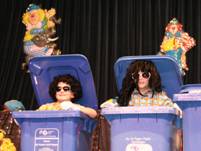 Fünf blaue Tonnen wurden dann auf die Bühne gerollt. Mit dem „Manamana“ Song offenbarte sich der farbenfrohe, musikalische Inhalt und das Publikum dankte diesen sehr gelungen Auftritt von Bastian Stahl, Fabian Döhms, Nils Kessler, Jannik Keßler, Thomas Lenz und Felix Oppenhäuser mit lang anhaltendem Applaus. Einstudiert wurde die Tonnen-Show von Claudia Oppenhäuser.