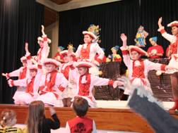 Danach stürmten die „Action Kids“ in bester Hämmel-Manier die Bühne und unsere Kleinsten erfreuten die Narrenschaar mit einem schön vorgetragenen Hammeltanz. Das Wackeln mit dem Po machte in diesem Fall nicht nur die Kinder und die Schäfchen froh. Die Schäfchen waren Jule und Paul Rüdesheim, Michelle Fischer, Leonie Muders, Alina Kapp, Lisa-Marie Scholl, Jessica Batz, Hannah Scheer, Finn Keßler, Laura und Lena Jäckel, Aaron Lenz, David Heidelmann, Tabea Stahl, Michael Slupic, Letizia Link und Romy Kessler. Trainiert wurden sie von Kerstin Scheer und Iris Rüdesheim.