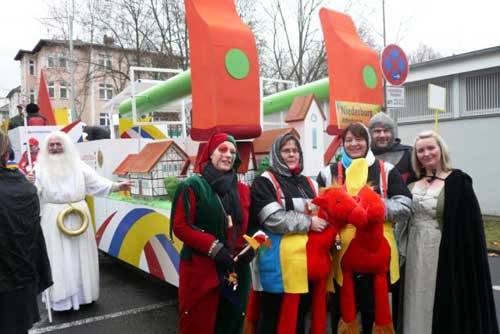 "Einmal in Mainz den Rosenmontag mitmachen, das wär`s doch mal." So könnte man die Freude Niederburger fastnachtbegeisterter Frauen und Männer bezeichnen. Die Hammerdörfer des Landes gestalteten mit der Mainzer Redaktion der Landesschau des SWR eine Zugnummer im Mainzer Rosenmontagszug. Die Niederburger Hammerdörfler wurden von der fastnachterprobten Hildegard Lenz angeführt. Ganze fünf Teilnehmer hatte der Mainzer Sender für die Darstellung der bisherigen Themen der 24 Stunden Aufgabe zugelassen. Die Live Übertragung direkt vor dem Mainzer Theater hatte mit der Darstellung der Gruppe des Senders im Fernsehen so ihre Tücken, jedoch grüßte Ministerpräsident Kurt Beck die Niederburger persönlich über die Platzlautsprecheranlage und bereitete den Niederburger Narren eine besondere Freude.