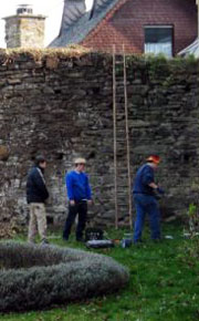 Die Restmauer der Niederburg wurde von einem Wust mehrerer Zentimeter starker Äste des Knöterichs und von ungebremst wachsendem Efeu von Mitgliedern der Tischtennisabteilung des SVN befreit. Die jungen Männer sind zu einem gern gefragten und immer ohne Zögern hilfsbereiten Team geworden. Hier haben sie eine Superarbeit mit einer beachtlichen Arbeitsleistung hingelegt. Etliche Anhänger mit entferntem Grünschnitt wurden Richtung Schredderplatz abgefahren. Das Mehrzweckgebäude wurde einer technischen Überprüfung unterzogen und Fenster, Türen, Beleuchtung und andere Teile der Hausversorgung überprüft und wenn nötig repariert.