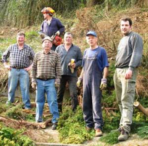 Ein gewaltiges Stück Arbeit hatten sich die Senioren der Feuerwehr vorgenommen. Ein von starkem, ungepflegtem Bewuchs überwachsenes Gemeindegrundstück wurde geräumt und Problembäume fachmännisch weggenommen. Dass davon allein lebende oder gesundheitlich nicht mehr ganz rüstige Senioren der angrenzenden Grundstücke profitierten, war erklärte Absicht der ehemaligen Floriansjünger unter der Leitung von Edgar Menne. Dem Bewuchs durch wuchernde Bodendecker rückte am Ortseingang eine andere Gruppe zu Leibe. Bergeweise wurden die fast 1m hohen Bodendecker in schweißtreibender Arbeit abgeschnitten und zum Grünschnittplatz transportiert. Die Rastplätze am Niederbach, sowohl an der Brücke am Schwimmbad als auch der neu eingerichtete Platz an der Cunobrücke wurden von zwei jungen, aktiven Heimatpflegern aufgearbeitet.