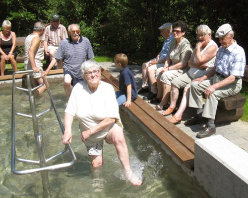 Zu einer praktischen und auch theoretischen Einweisung in die Grundsätze der Lehren nach Pfarrer Kneipp hatte die Gemeindeverwaltung den Physiotherapeuten Ralf Oppenhäuser verpflichten können. Eine stattliche Zahl Niederburgerinnen und Niederburger hatte sich am Gutenborn eingefunden, um einiges über den Wasserpfarrer und seine Lehren zu erfahren. Die Vorgeschichte, aber auch die persönlichen Erfahrungen des heilkundigen Pfarrers und wie man die Wasserheilkunde in Tretbecken und mit Armbädern richtig anwendet stellte Ralf Oppenhäuser vor. Der Nutzen und die Wirkung der Kalt- und Warmreize auf den Körper und die Verbesserungen des Wohlbefindens wurden erklärt und die Anwendungen zur Nachahmung empfohlen.