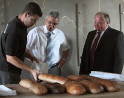 Dass Geldmittel zur Dorferneuerung in Niederburg gut angelegt sind, konnte sich der Gast zum Schluss der Veranstaltung überzeugen. Seit der Erneuerung des Holzbackofens im Gemeindebackhaus haben sich fast 25 junge Niederburgerinnen und Niederburger in die Backkunst in einem mit Holz gefeuerten Steinofen unterweisen lassen und backen Original Hunsrücker (Niederburger) Backesbrot. Kinder sind als "Backeslehrlinge" gerne Gast im Backhaus und fertigen nach Anleitung Köstlichkeiten aus dem Backofen und erleben Backhaustradition lebendig.