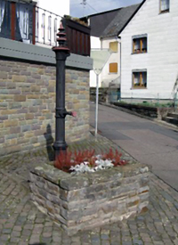 Derzeit werden Kostenangebote zur Beschaffung eines Brunnentroges aus Basalt oder Granit für den Unterdorfbrunnen eingeholt. Hier war bisher kein Trog vorhanden, ein neuer muss beschafft werden. In Kürze werden wieder alle historischen Dorfbrunnen aus der ältesten noch bestehenden Quelle "Auf dem Spiss" gespeist werden können. Dank der Hilfe des Landes durch Mittel aus der Dorferneuerung und aller Möglichkeiten der Kostenreduzierung wurde dieses Projekt erst umsetzbar. Der Dank an die vielen Helfer und Handwerker, die wieder einmal kostenlos zur Verfügung standen, darf dabei nicht zu kurz kommen.