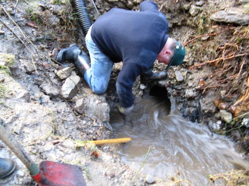 Die Feuerwehr Niederburg half mit einigen Aktiven die Abläufe wieder frei zu spülen und für den Ablauf des Wassers zu sorgen.Größerer Schadenkonnte dadurch verhindert werden. Der naturbelassene Unterbau der Wege kann dauerhafter Nässe nur bedingt standhalten und weicht regelrecht auf. Die Oberfläche der Wege hat ebenso stark Not gelitten, hier sind aufwändige Reparaturen nach Ende der Frostperiode nötig.