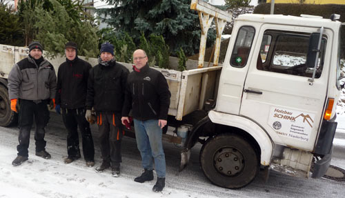 Christoph Schink, Steffen Conredel, Michael Bodenbach und Dennis Muders sowie Jugendleiter Holger Link, sammelten in diesem Jahr eifrig Weihnachtsbäume, gegen eine kleine Spende für die Jugendkasse, ein. Mit diesem Geld finanziert die Jugend vom SV Niederburg unter anderem ihre jährlichen Abschlussfahrten.